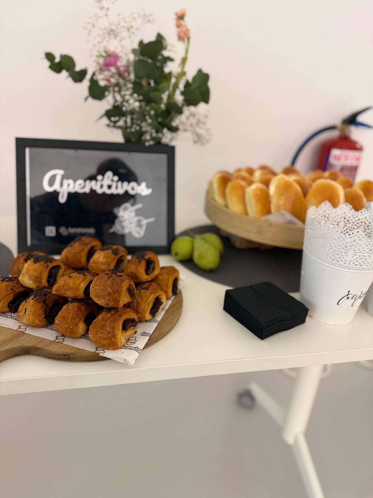 RECUERDA: En todos los Coffee Breaks de Hambroneta incluimos mantelería, vajilla, servilletas, papeleras, etiquetas de productos y alérgenos y nuestro Hambroneta Touch: ese mimo y gusto especial que hace que tu mesa no parezca una más del montón, sino de evento cuidado de verdad.